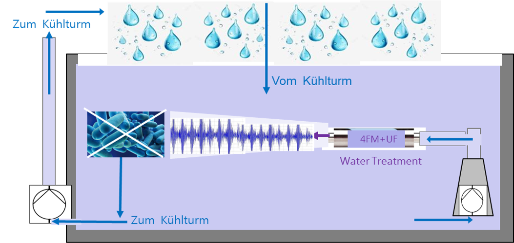 Microroganismen und Legionellen werden eliminiert und Ablagerungen im Sammelbecken und im Kühlturm werden sanft abgebaut